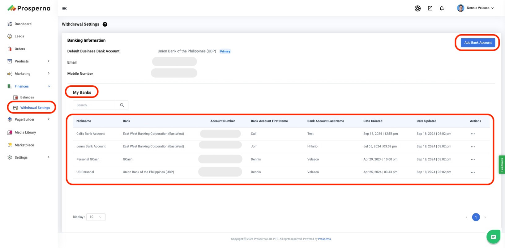 Now, Prosperna customers can easily add more disbursement bank accounts and edit/change existing bank details to manage their finances.