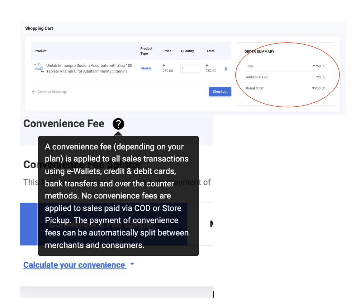 - can use the description in the Store Settings - Convenience Fees part (bottom-most)