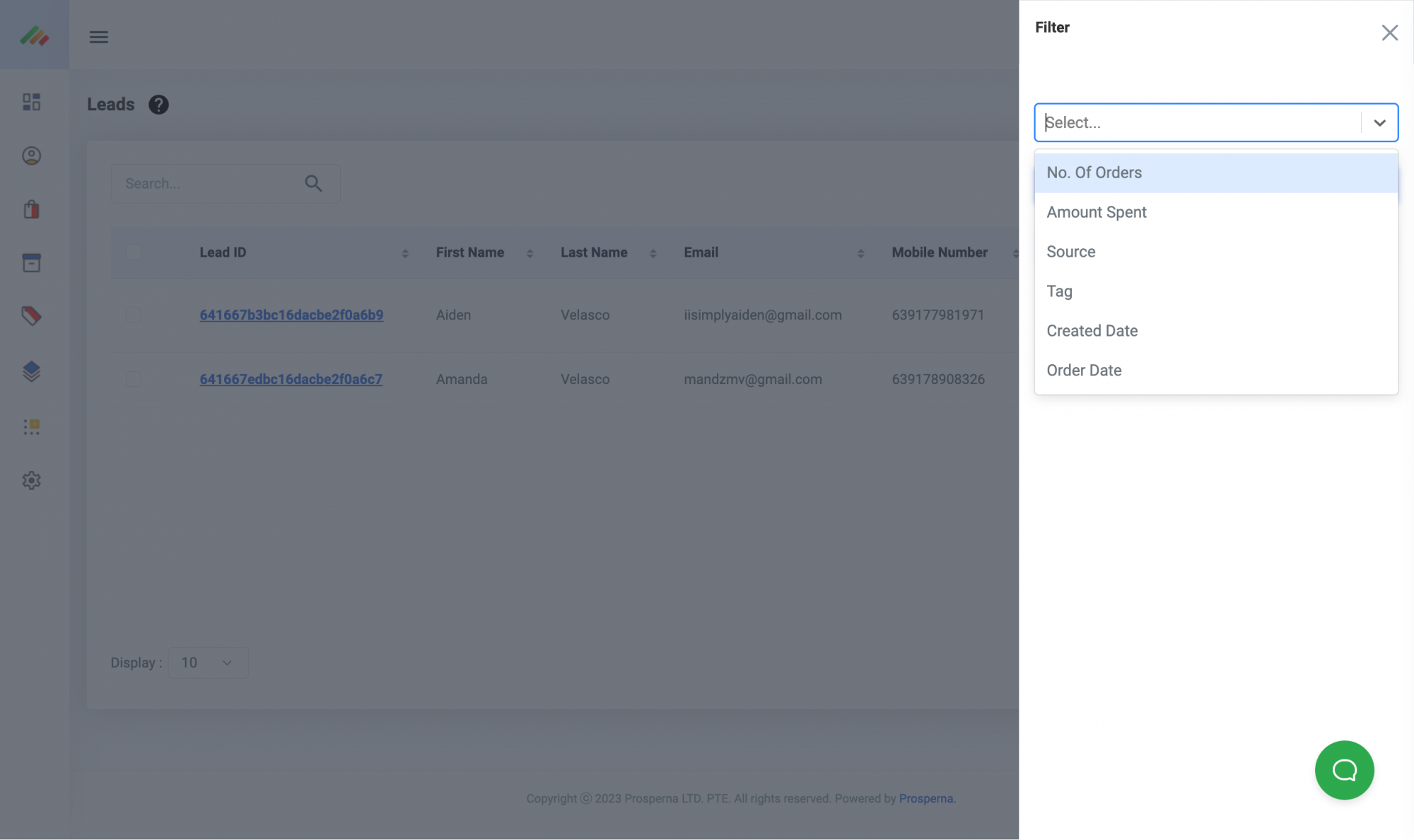 Ability to filter leads by: