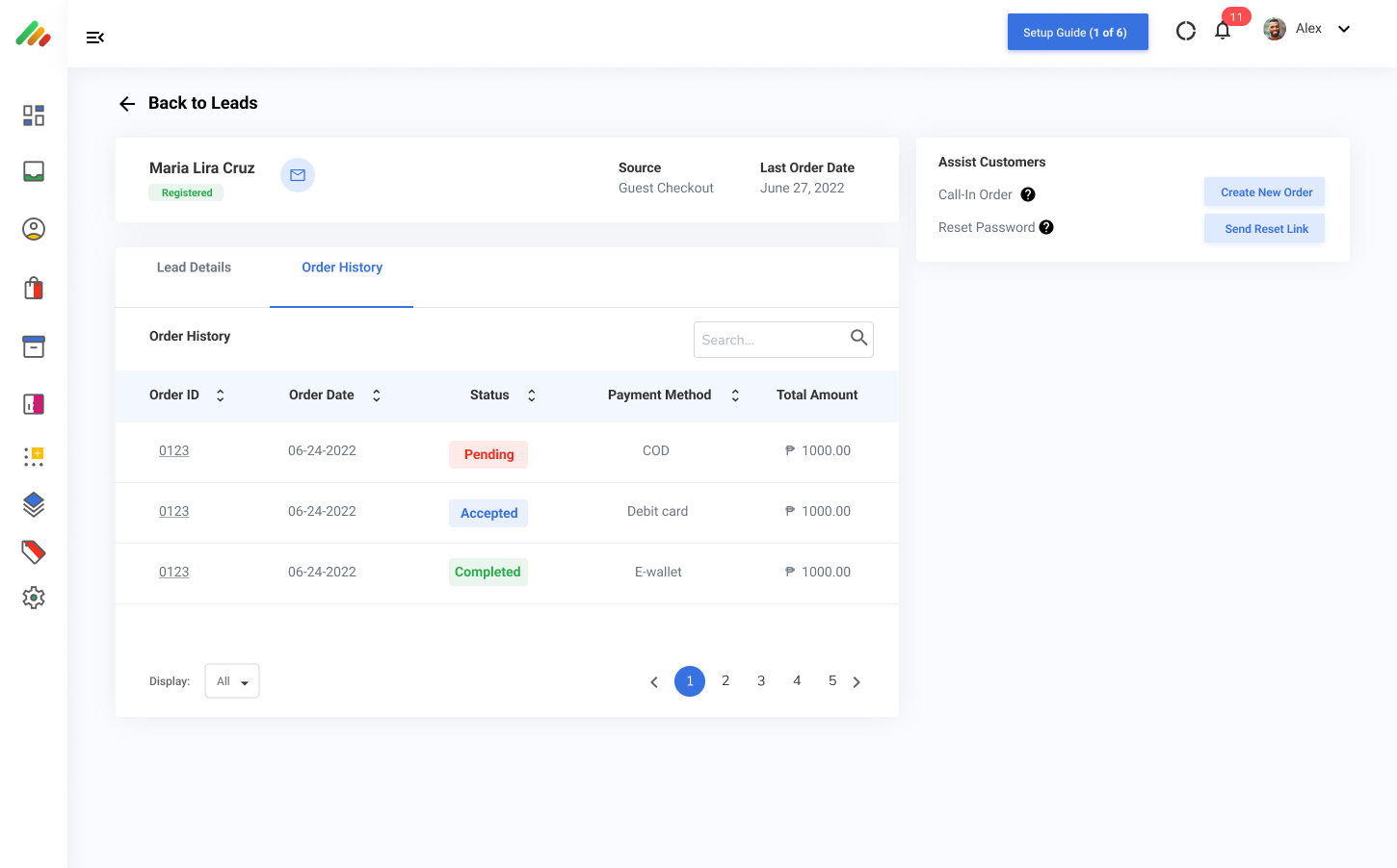 The ability to view order history of each customer who's ordered from a merchant.