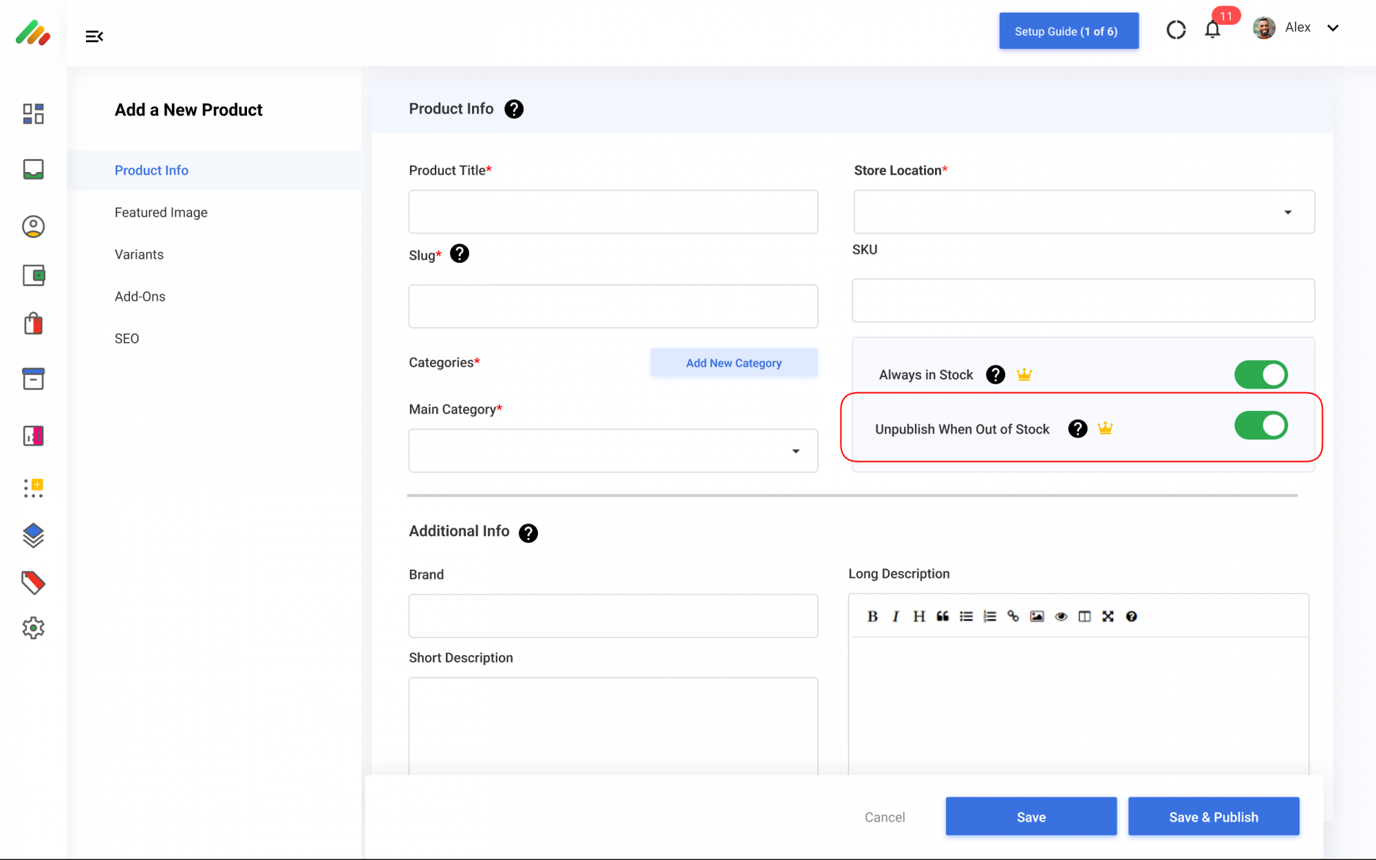 When merchants sell "unique" products & services with only 1 or limited stock, once the product is sold out (inventory = 0), the system should display the label "Out of Stock".